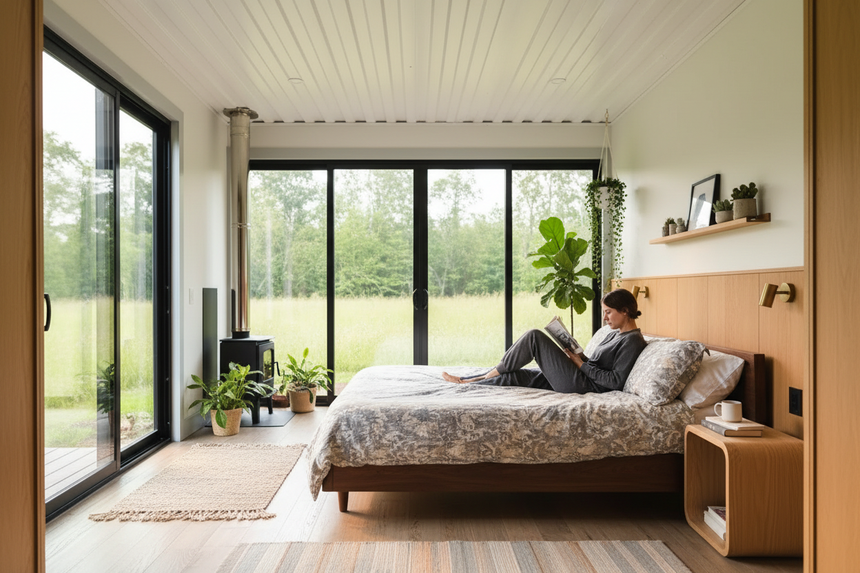 Every material is intentionally selected for human health, avoiding VOCs, formaldehydes, and off-gassing components. The result is a clean, low-toxicity living environment designed to support recovery, and well-being.
